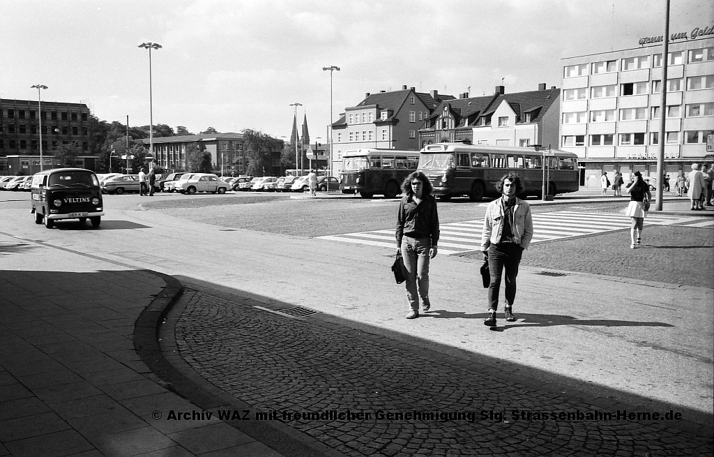 Ein Stück fehlender Zebrastreifen erregt die Gemüter der Herner Bevölkerung. Dies so sehr, dass eine öffentliche Diskussion auf "höchstem Niveau" ausgetragen wird. Ausgerechnet vor dem Herner Bahnhofsgebäude soll der Fußweg zu den Bussteigen ein Spießrutenlauf durch den Verkehr sein. Der nichthandelnden Stadtverwaltung wird mit Bürgerpflicht das Urteil des Bundesgerichtshofes unter die Nase gehalten: "Die Stadt als Versicherungspflichtige muss im Schadensfall haften". Irgendwann wurde dann auf der Fahrbahn nachgemalt. Selbst ich kann mich noch daran erinnern.